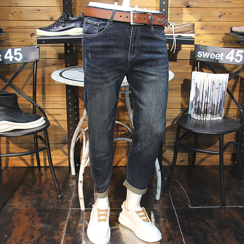 - 韩版破洞小脚裤男