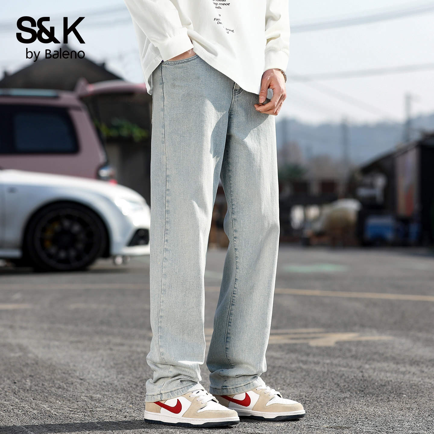 班尼路SK牛仔裤男2025秋季新款宽松直筒弹力休闲青年潮牌长裤子YS