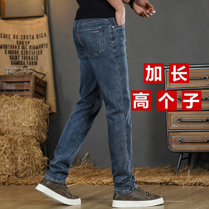 秋季115厘米加长牛仔裤男士高个子修身小直筒弹力中腰青年190男装
