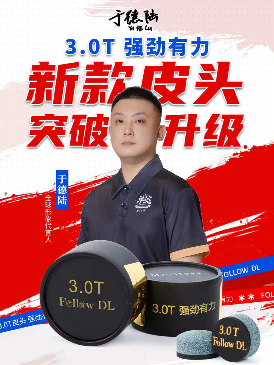 于德陆皮头3.0T2.0T大鲨鱼黑八斯诺克小头杆台球杆桌球杆枪头正品