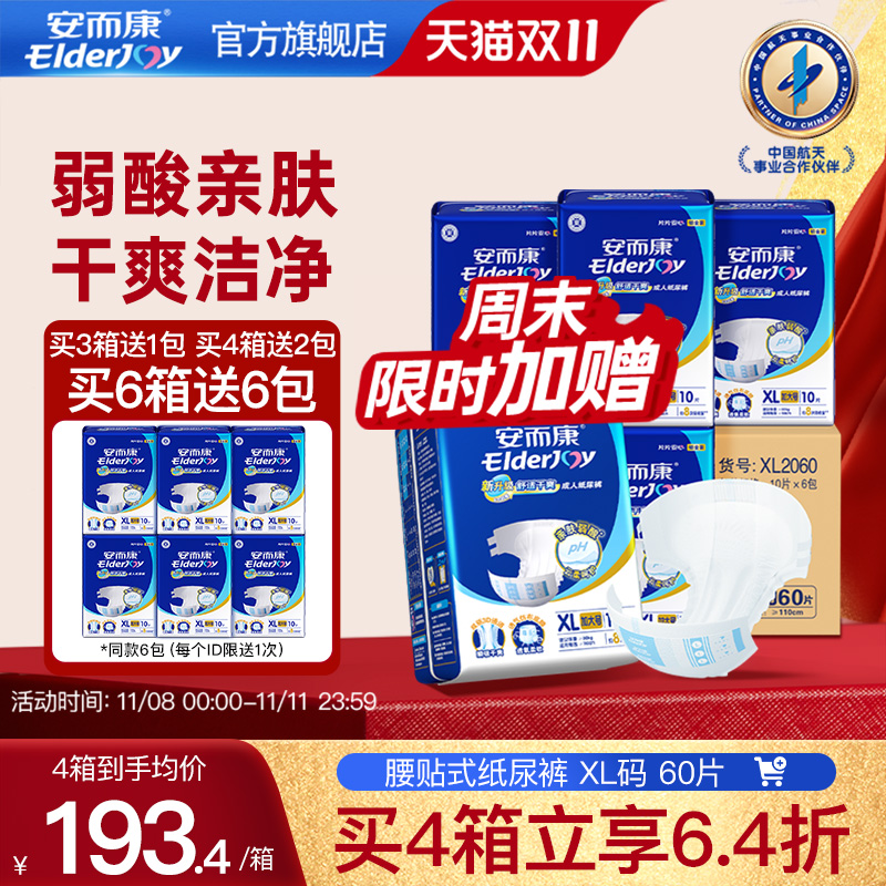安而康成人纸尿裤老人用男女老年人尿不湿护垫特大号XL60片安尔康
