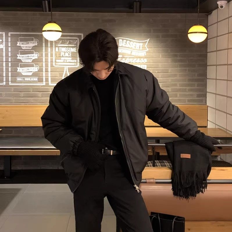 韩国男装代购直播WISE极简都市短款蓬松立体设计套指棉服夹克外套