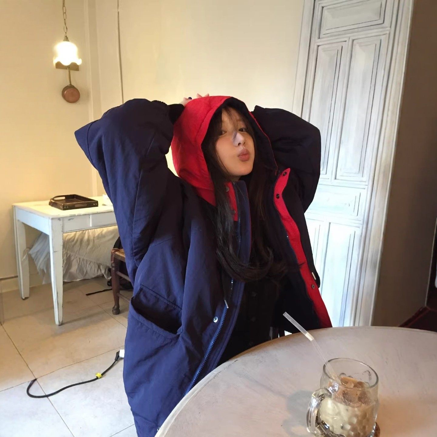 韩国代购直播福利秒杀LABSTUDIO男女撞色连帽宽松阔版棉服外套