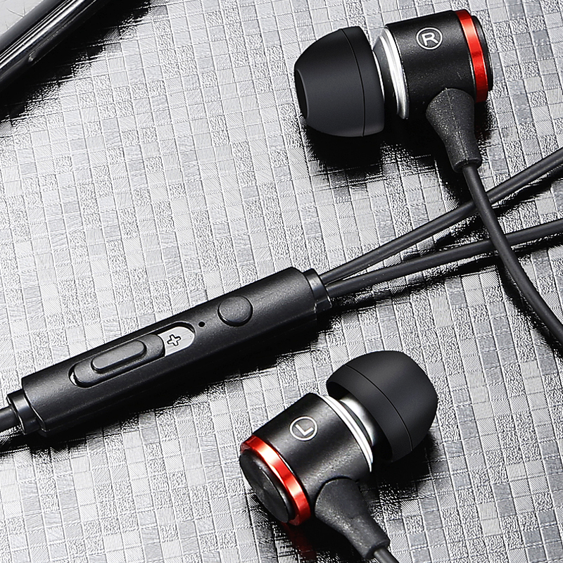 A03入耳式弯头金属重低音听歌耳机有线调音线控通话带麦耳塞盒装
