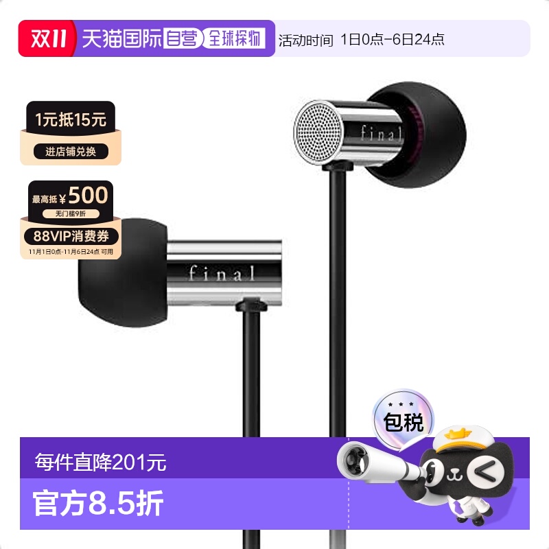 【日本直邮】Final入耳耳机E3000动圈式高音质有线人声金属重低音