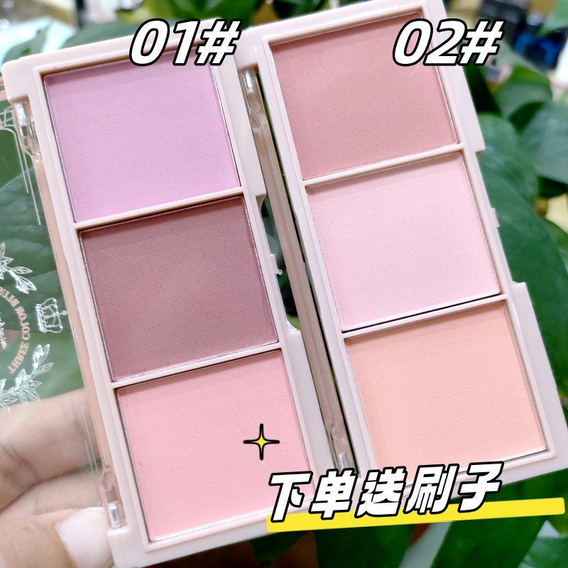 腮红三色盘高光腮红腮紫蜜桃橘粉烤奶茶色裸妆新款哑光自然杏粉色
