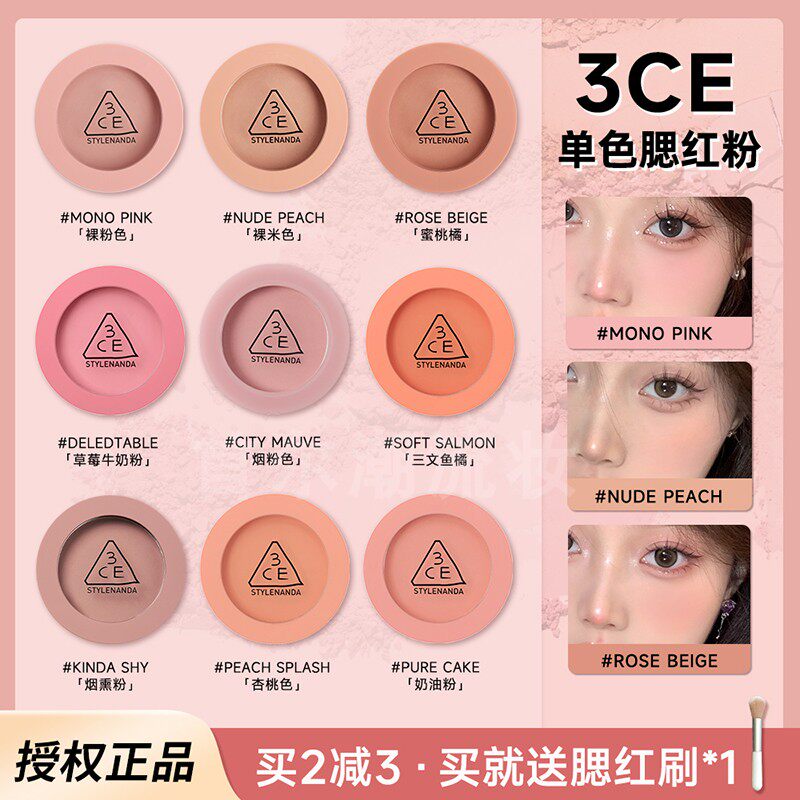 3ce腮红蜜桃橘裸粉色米nudepeach/monopink/rosebeige/delectable