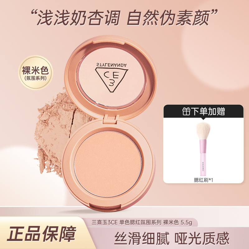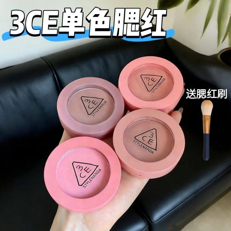 3CE单色腮红 新款蜜桃橘裸粉奶杏修容膨胀色收缩色女生烟粉色元气
