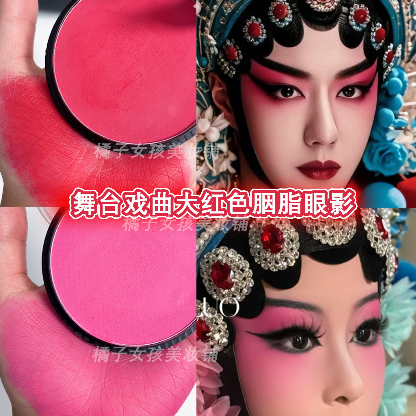 大红胭脂腮红玫红色眼影白色粉底膏戏曲舞台新手彩妆粉色橘红防水