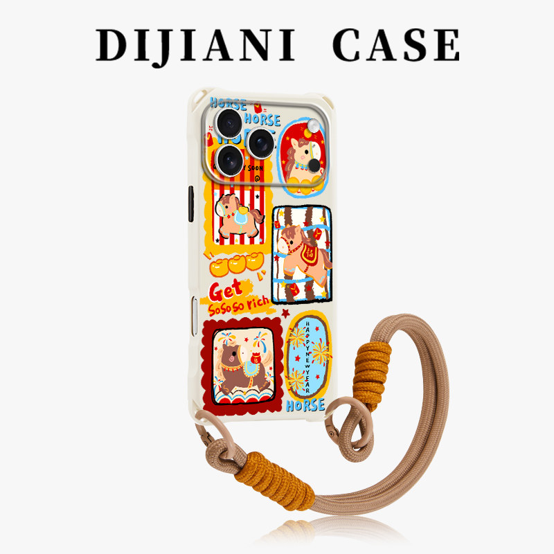 邮票小马适用苹果17promax手机壳挂绳斜挎iphone16pro手腕可爱15女款可背14时尚卡通13马年新款12防摔手提pm