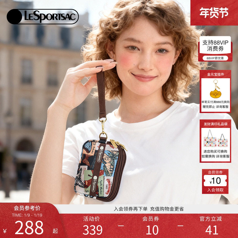 LeSportsac乐播诗新款蝴蝶邮票系列复古手绘拼接风格零钱包手拿包