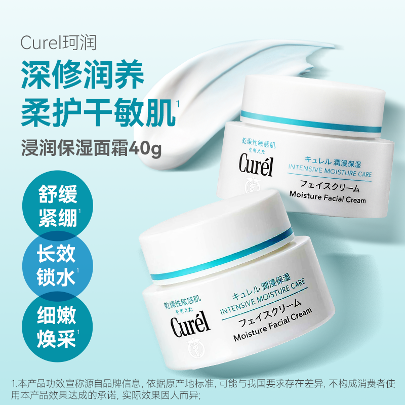 curel珂润面霜40g女补水保湿敏感肌修护滋润肤神经酰胺旗舰店正品