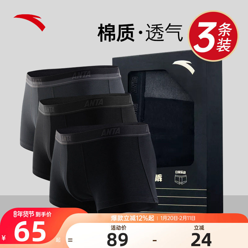 安踏运动内裤男生四角内裤亲肤透气舒适男士健身跑步平角短裤男款