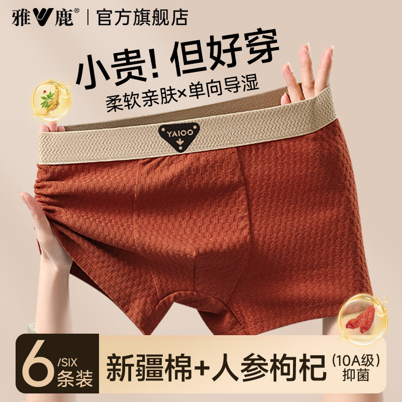 雅鹿男士内裤纯棉抗菌男生2026新款运动吸汗四角平角短裤衩男款PB