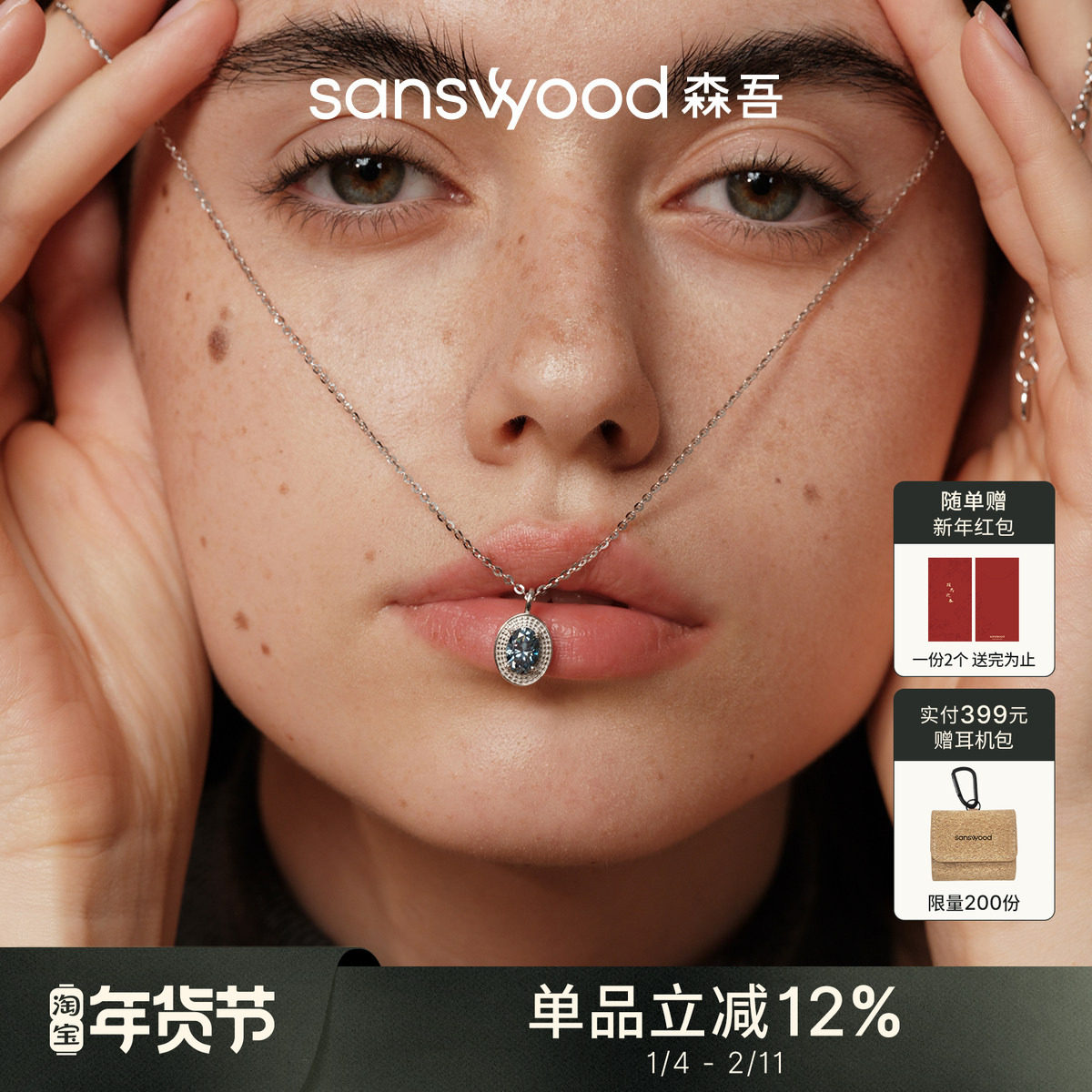 sanswood森吾《达西》高级感原色蓝调莫桑石项链女通勤气质锁骨链