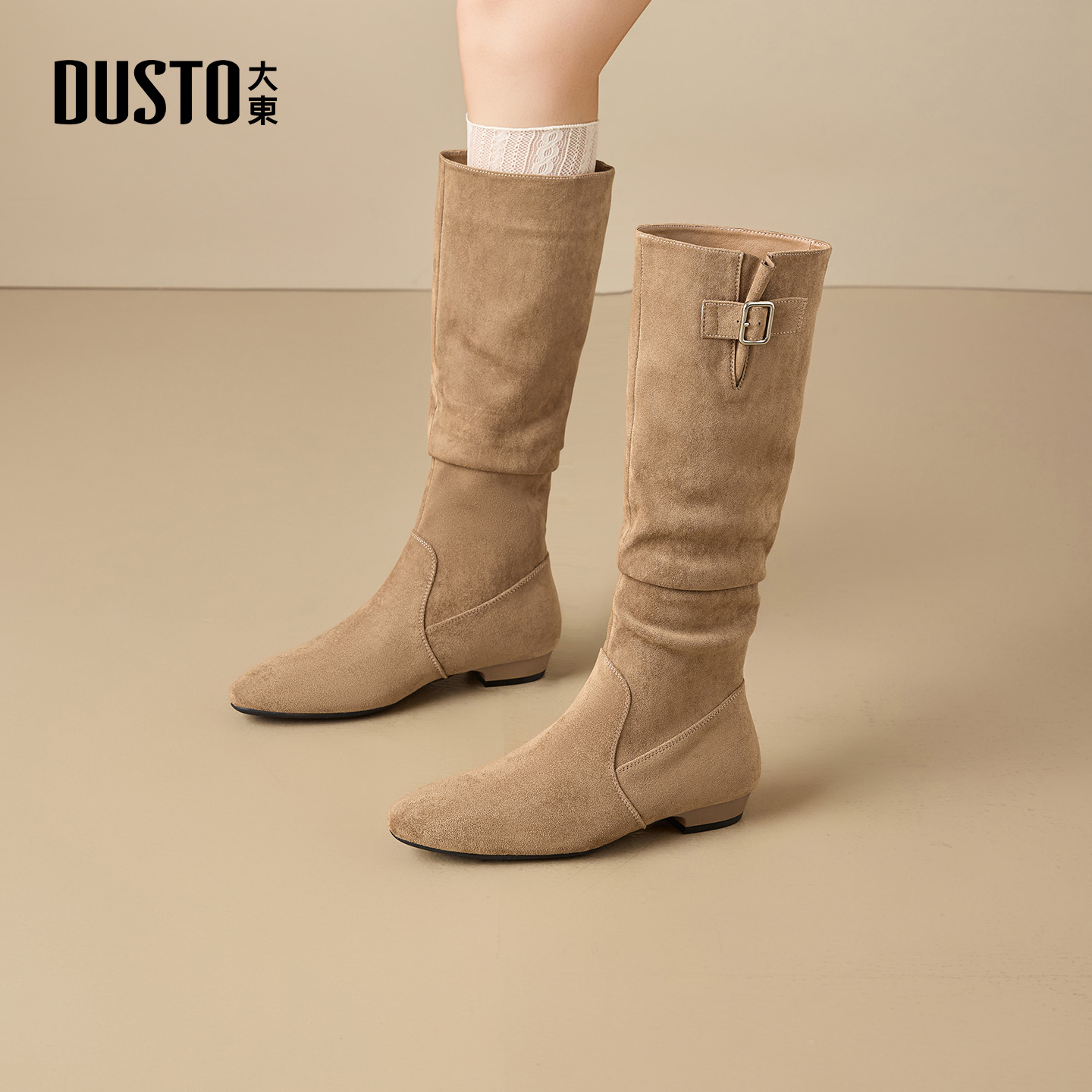 大东女鞋长靴2025冬季新款英伦复古绒面长筒靴套筒平跟美拉德女靴
