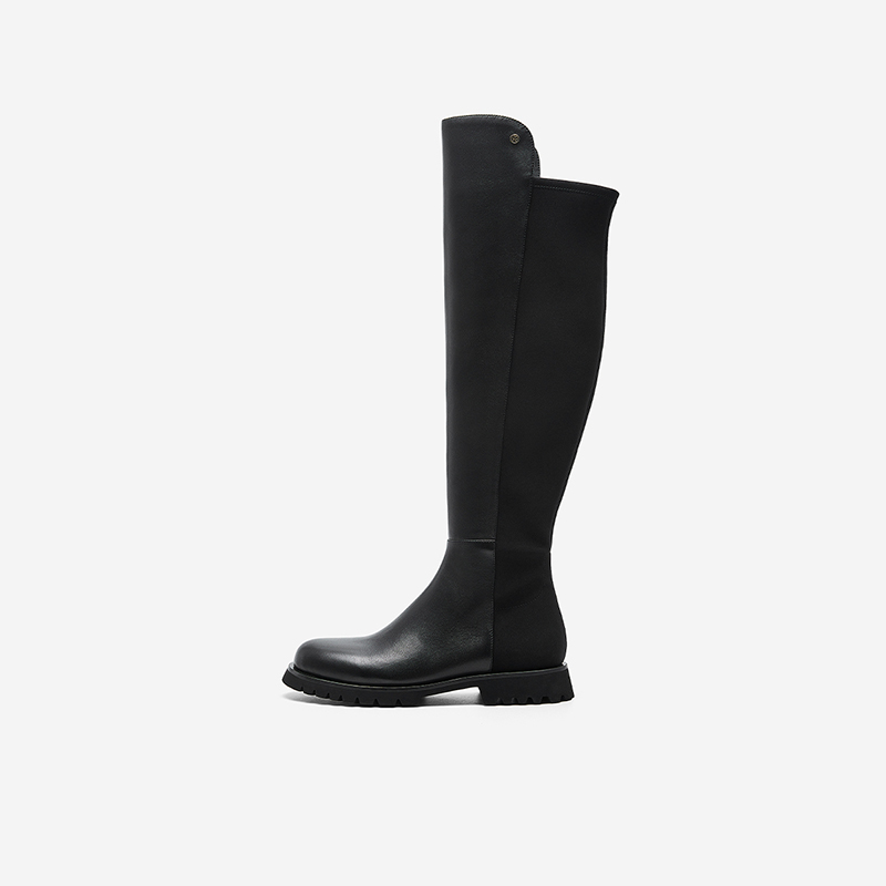 SW 5050 经典秋冬圆头骑士靴平跟过膝靴女拼接瘦瘦靴长筒靴女靴子