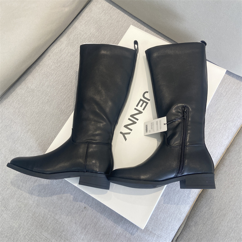 大东骑士靴女靴2025冬季新款时装通勤长筒靴保暖加绒平跟职业长靴