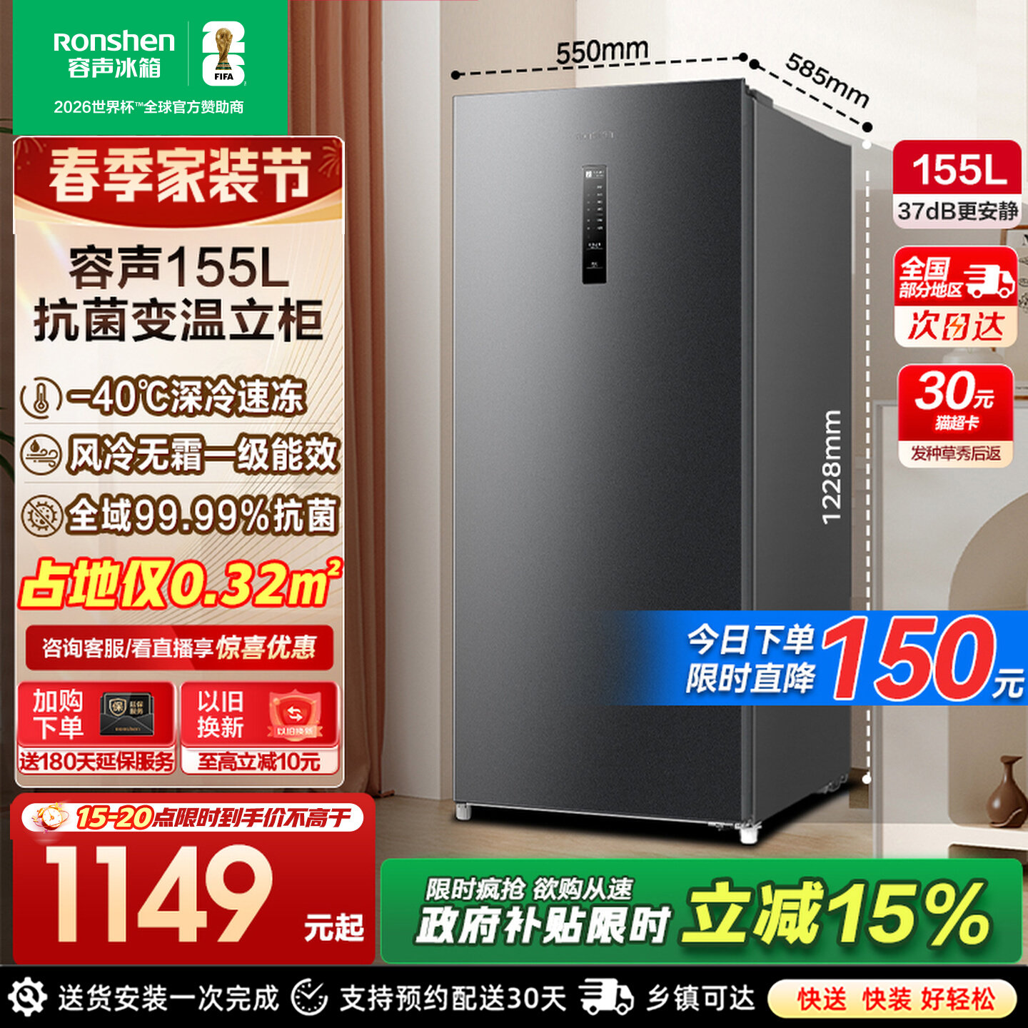 容声155升立式冰柜家用小型冷柜抽屉式全冷冻冷藏母乳风冷小冰箱