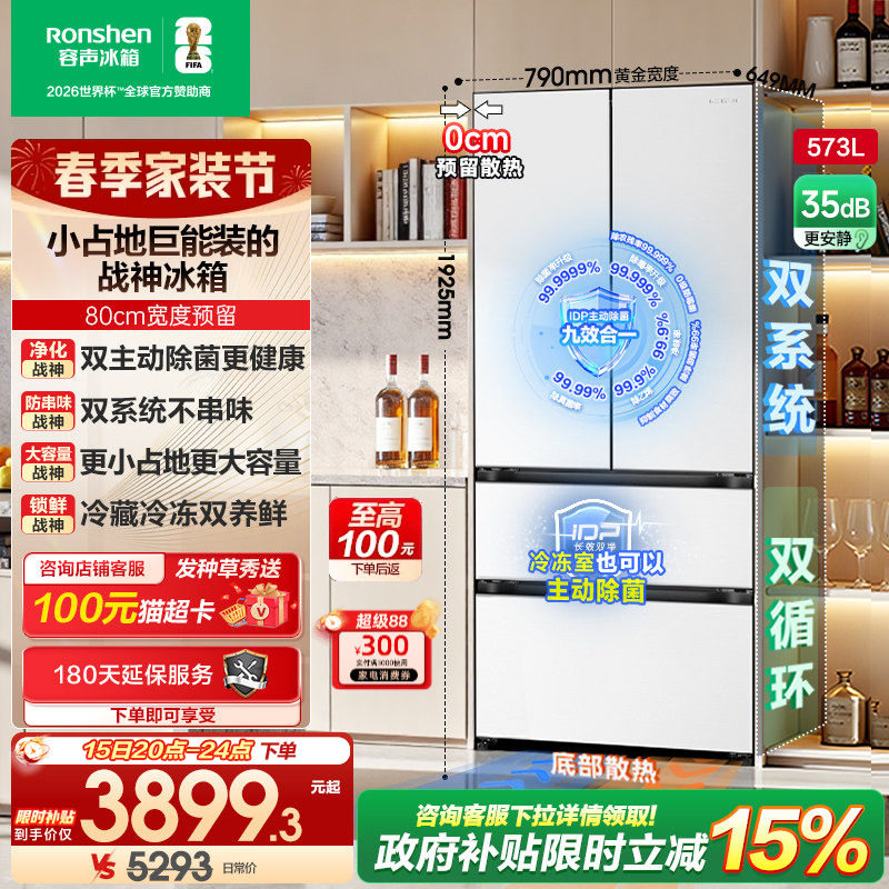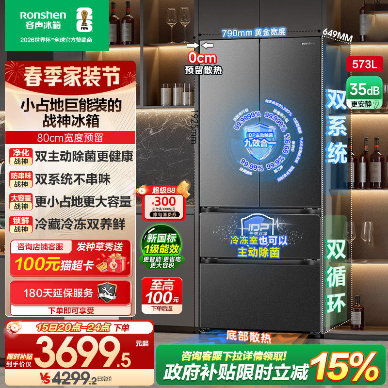 (容声526升级)战神573L双系统法式多门嵌入式冰箱家用换新补贴