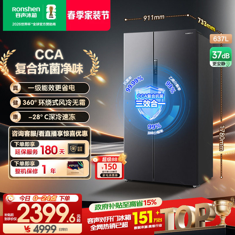 容声637L对开双开门大容量家用一级能效风冷无霜冰箱官方换新补贴