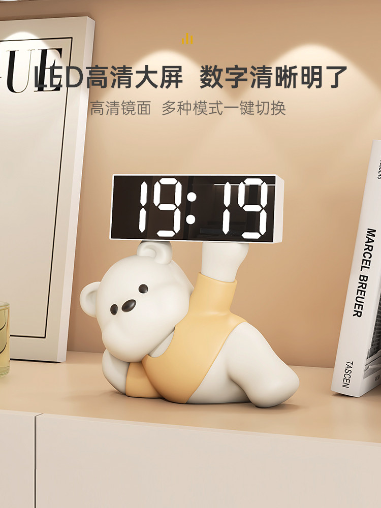 卡通熊电子闹钟定时钟客厅桌面床头柜玄关装饰品摆件小礼物送朋友