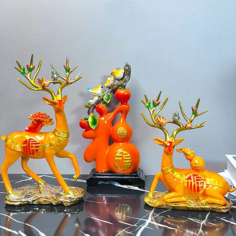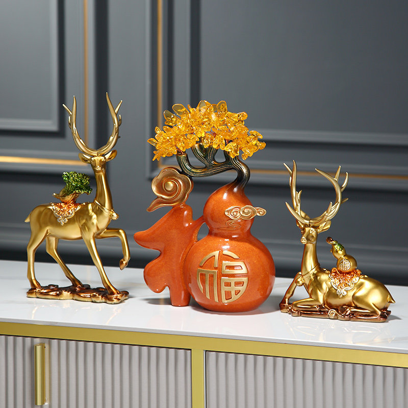 龙年新品【福禄双全】福鹿葫芦三件套乔迁之喜酒柜玄关装饰品摆件