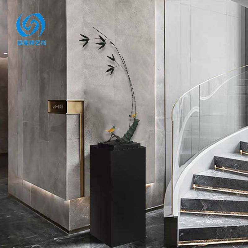 现代新中式禅意石头竹子摆酒店大堂设样板房间创意玄关装饰品摆件
