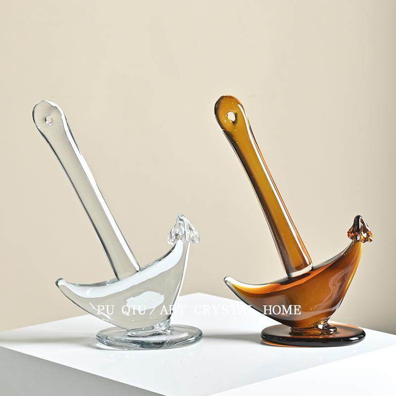 极简棕色玻璃船锚造型桌面摆件家居卧室床头柜门厅玄关装饰品摆件