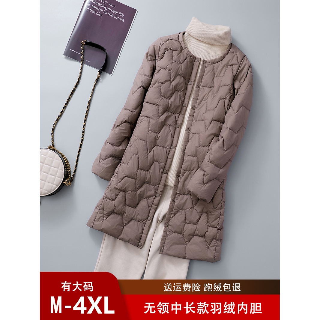 无领轻薄羽绒服女中长款超轻便超薄款圆领羽绒内胆内穿中老年妈妈