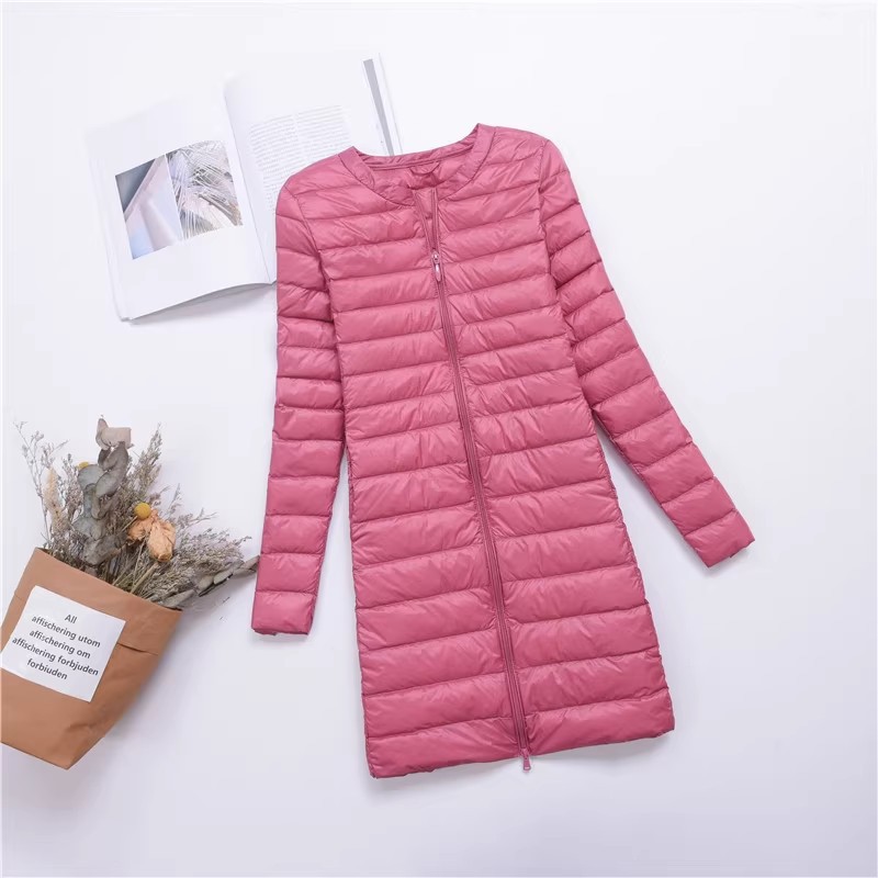 - 立领轻薄羽绒服女中长款