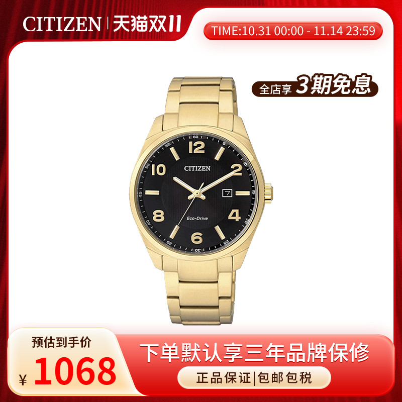 citizen西铁城日本手表男光动能复古妒镀金色男士腕表BM7322-57E
