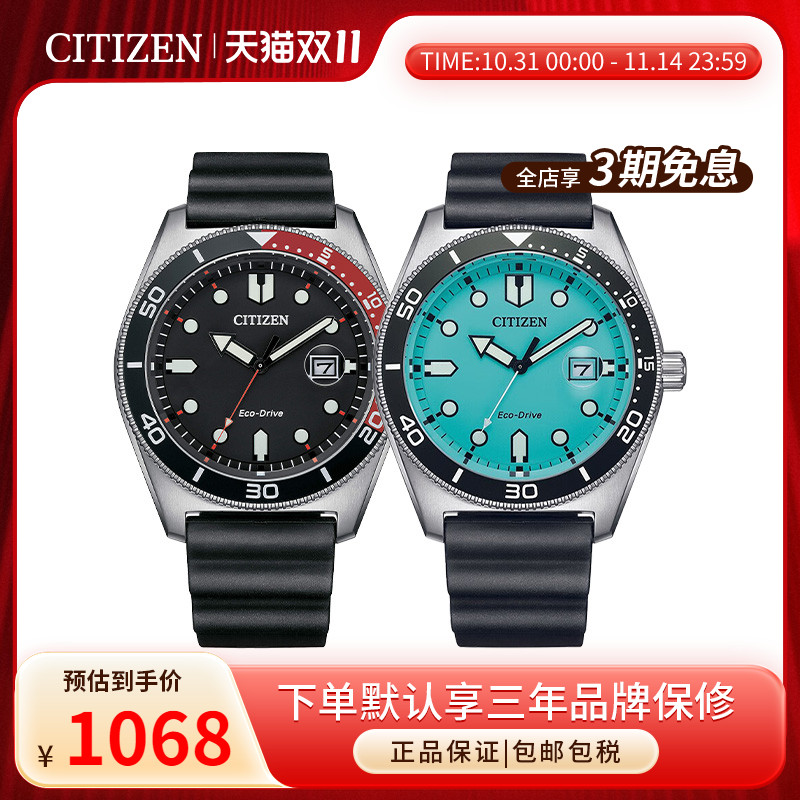 citizen西铁城日本手表男光动能放大镜绿水鬼幻彩系列腕表AW1769