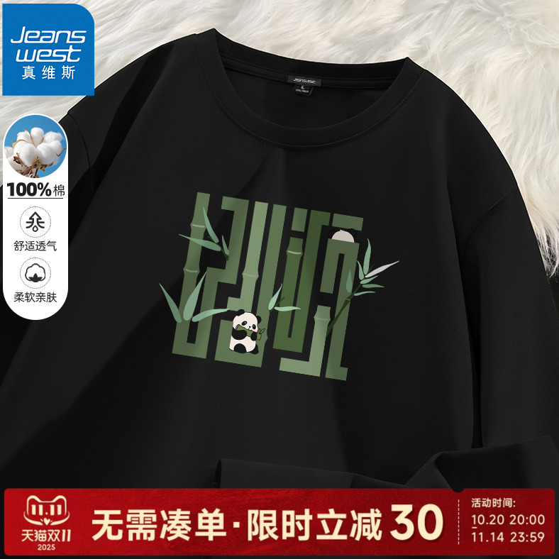 GV真维斯长袖t恤男2024新款中国风国潮男装春秋款大码纯棉打底衫C