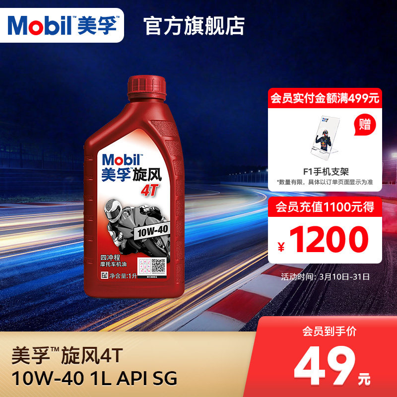 Mobil美孚旋风4T 10W-40 1L 矿物质机油摩托车润滑油官方正品