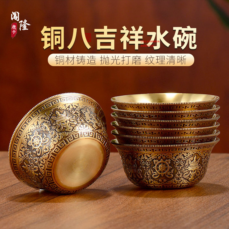 黄铜八吉祥供水杯家用供奉圣水杯供碗八供净水杯财神观音佛前摆件