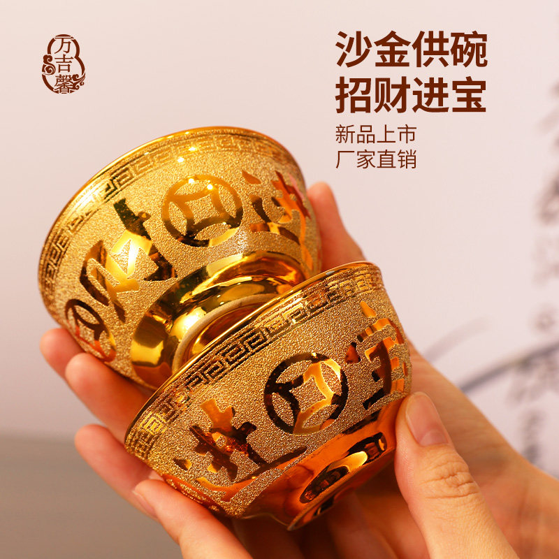 黄铜圣水杯家用供水碗客厅装饰用品供水杯 财神爷贡杯净水杯摆件