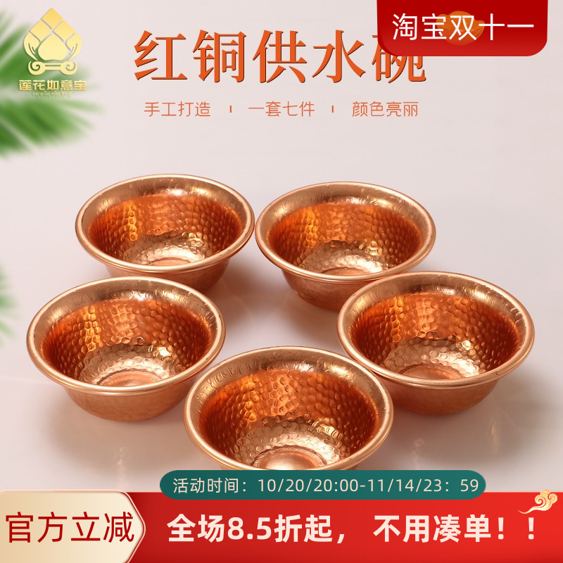 红铜手工敲打供水杯佛堂家用光面压花供水碗七供八供大口径供佛杯