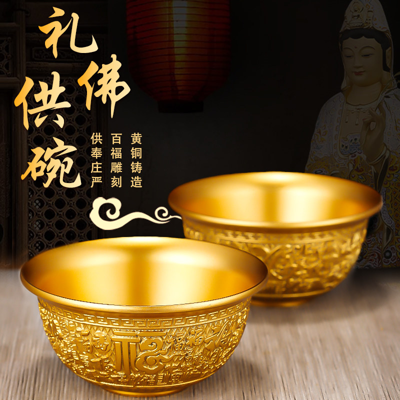 黄铜供水碗藏式圣水碗供水杯家用供奉佛前观音财神斋饭铜碗多尺寸