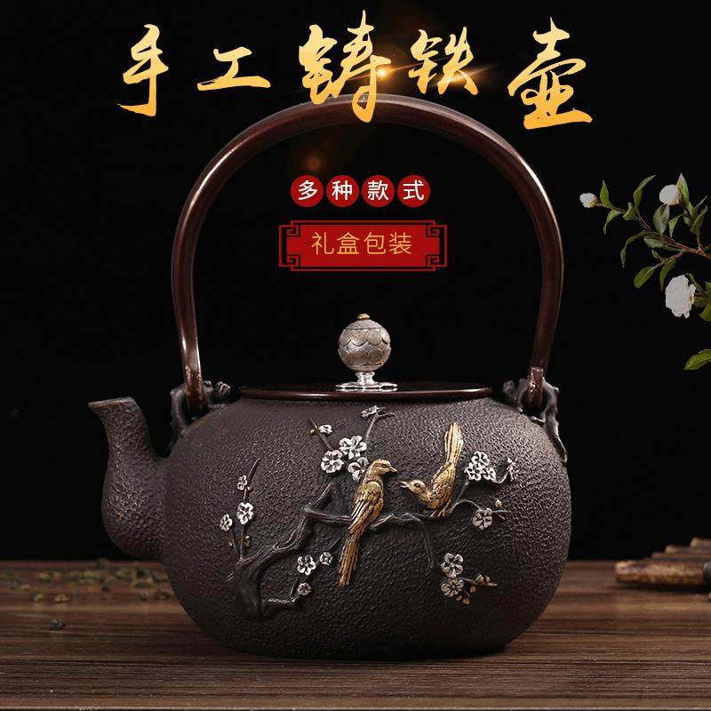 正品手工铁壶复古砂铁壶原装进口烧水壶提梁茶壶南部铁瓶养生茶具