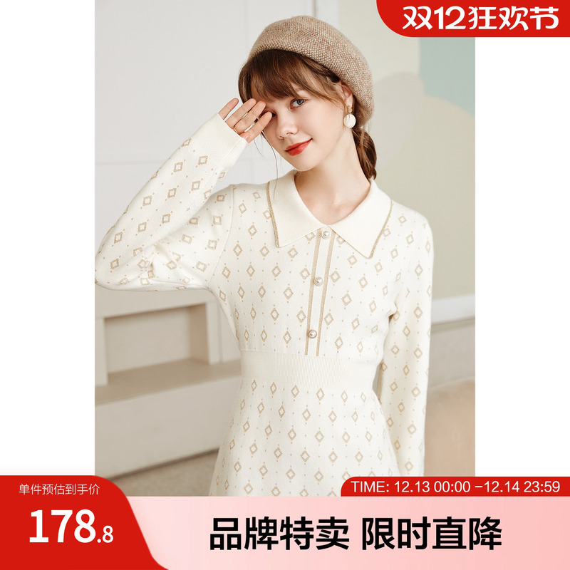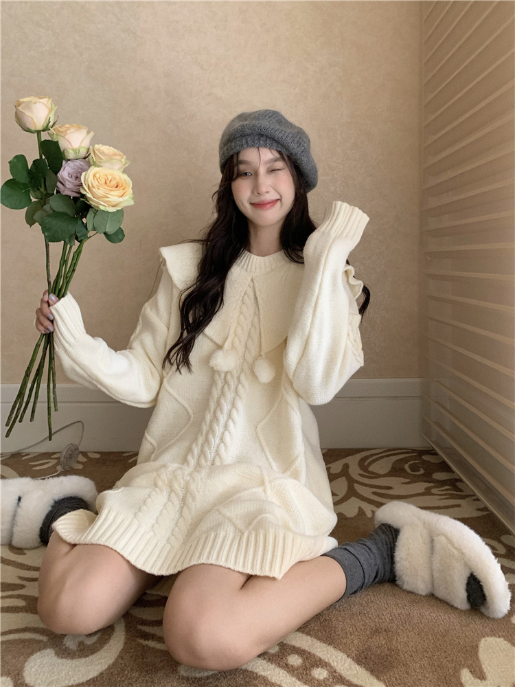 娃娃领羊毛针织连衣裙女秋冬季新款中长款配大衣的内搭打底毛衣裙