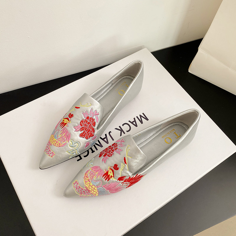 国潮刺绣新国风新款内增高平跟尖头单鞋女鞋奶奶鞋妈妈鞋大码超软