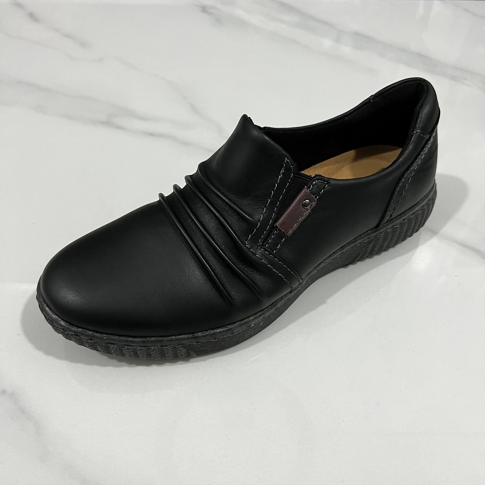 外贸全皮全黑超轻平跟深口一脚蹬单鞋大码女鞋工作鞋妈妈鞋 F6246