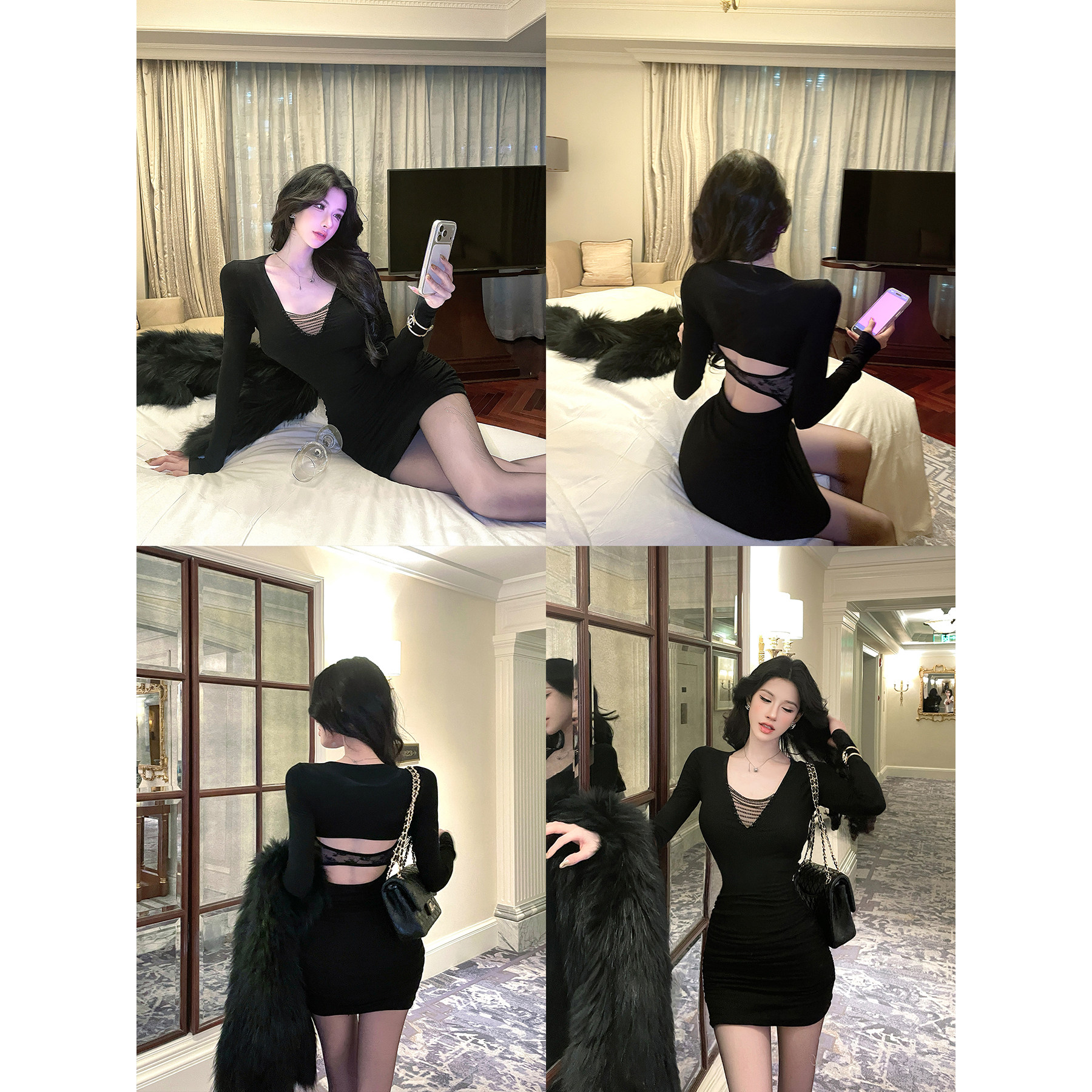 - 夜店性感包臀连衣裙