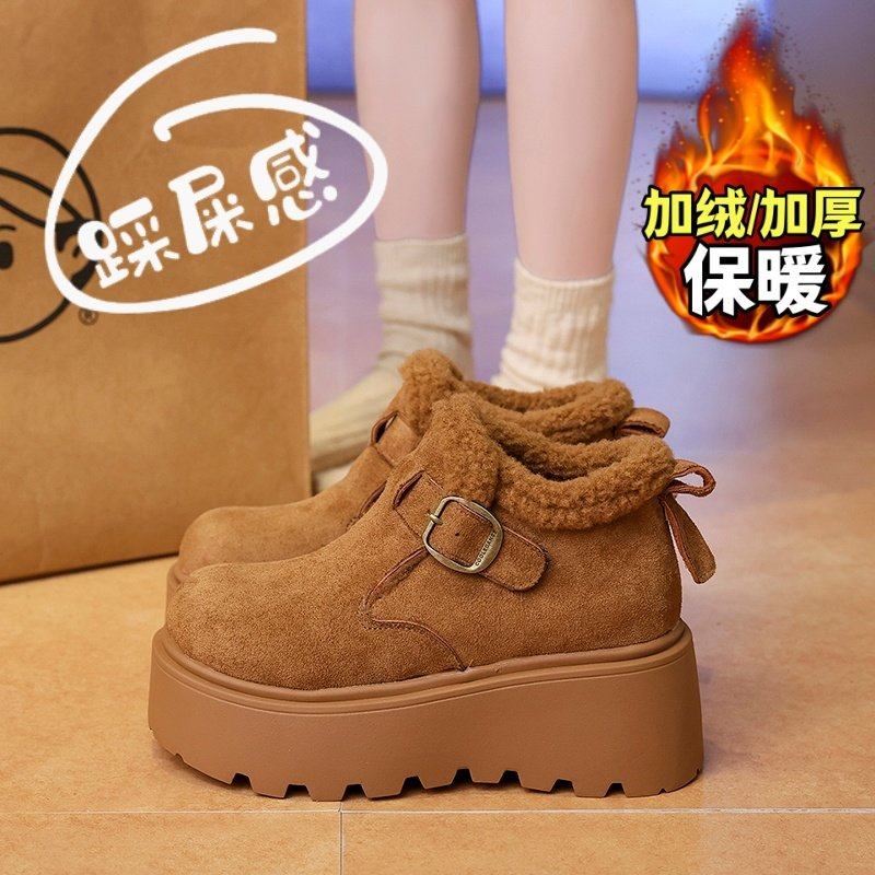 加绒松糕厚底勃肯鞋女鞋子2025冬新款羊羔绒保暖增高乐福棉鞋34码