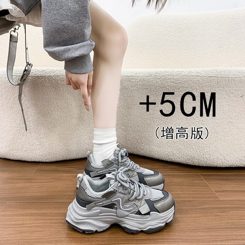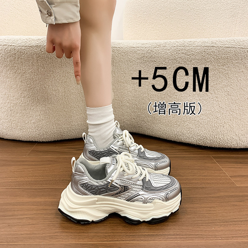 女鞋松糕厚底银色老爹鞋女款2026春季新款超火增高运动休闲鞋34码