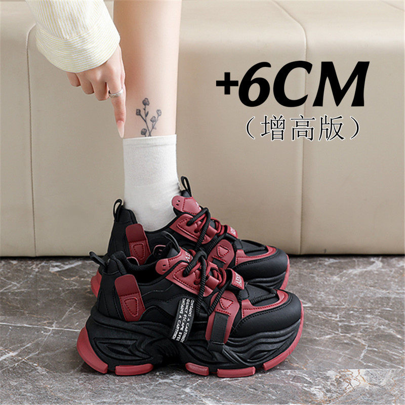 松糕厚底老爹鞋女2026春季爆款红色女鞋小个子增高休闲运动鞋34码