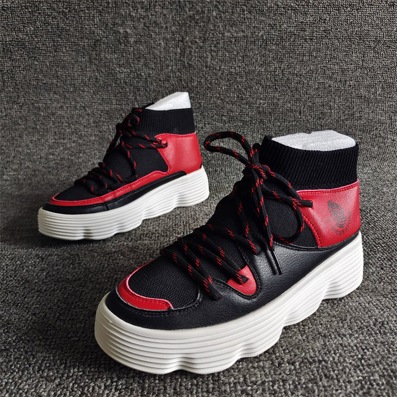 商场撤柜断码新款女鞋休闲高帮系带松糕厚底轻便百搭透气单鞋34码