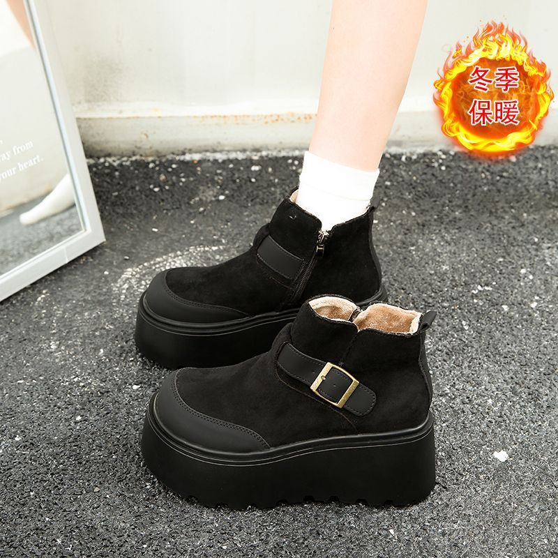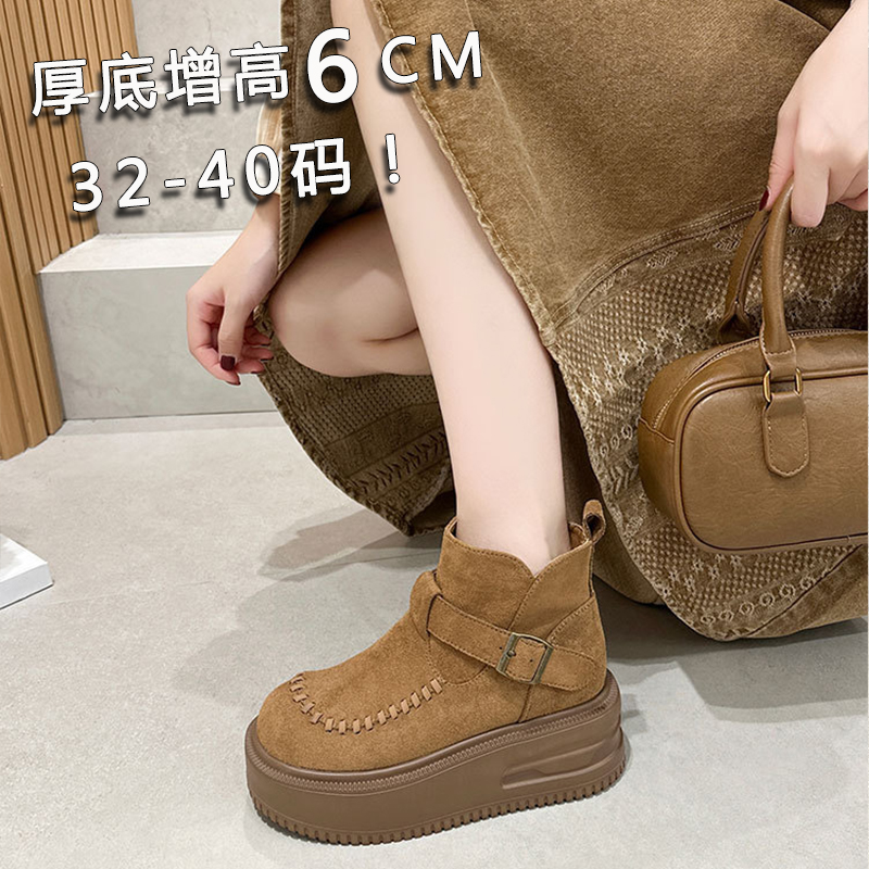 松糕厚底增高勃肯鞋女2025冬季加绒皮带扣毛毛高帮棉鞋34码雪地靴
