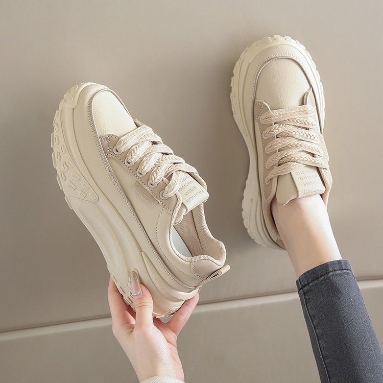女鞋真皮厚底板鞋2025新款秋季松糕增高小白鞋34码学生休闲运动鞋